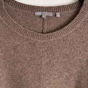 The neutral brown tone makes it a versatile piece perfect for layering during fall and winter. Vince is known for high-quality knitwear and timeless wardrobe staples.