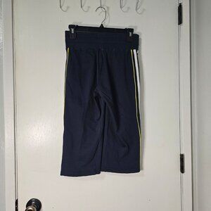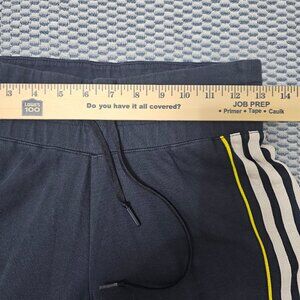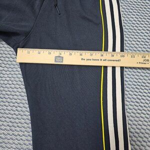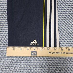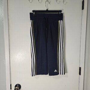 Adidas Navy Blue 3-Stripe Cropped Track Pants - Neon Yellow Accent - Size S