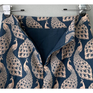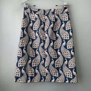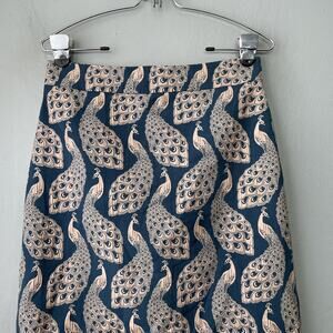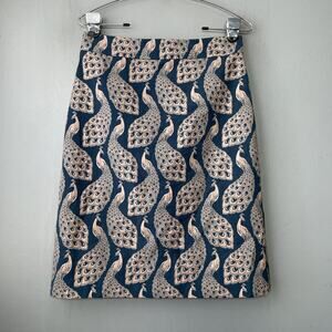 Ann Taylor teal blue and beige tan peacock print brocade tapestry lined skirt in Excellent condition!