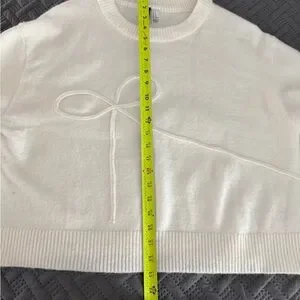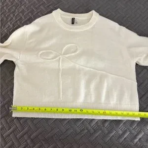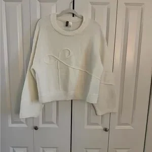 Elegant cream sweater with a unique bow accent. Ideal for any occasion.