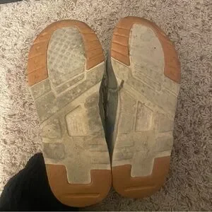 New Balance shoes with gray and yellow accents. Perfect for active wear.