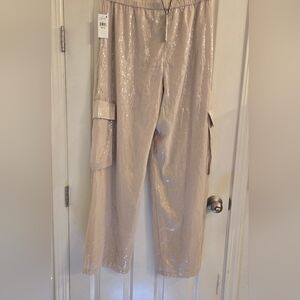 Sanctuary Cream Wide Leg Sequence Cargo Pants Size: XL