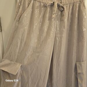 Stylish Sanctuary wide leg Sequence pants with cargo pockets. Comfortable and versatile. Perfect for any occasion.