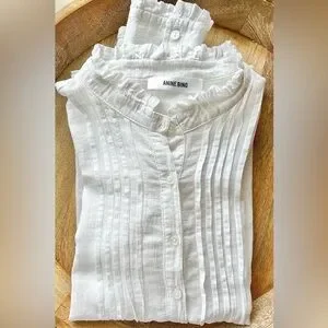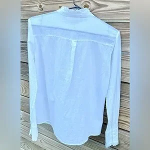 Anine Bing Women’s 100% Cotton White Ruffle Neck Tuxedo Button Down Size Small