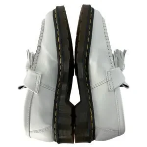 Dr. Martens Adrian tassel loafers in white leather. Classic fringe tassel design with signature yellow welt stitching and Dr. Martens air-cushioned sole.