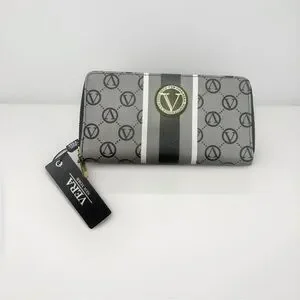 Vera New York Wallet Womens Black Signature Logo Zip Around Stripe Geometric New
