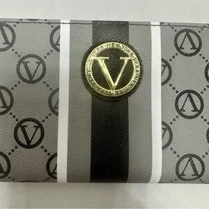 Design: Modern signature "V" monogram print with a sporty triple-stripe accent.