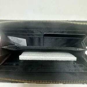 Interior: Fully lined with 8 credit card slots, two bill compartments, and a center zippered coin pocket.