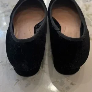 Zara Black Velvet Low Block Heel Flats with Pearl Bee Accent