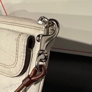 Coach Soho White Leather Wristlet with Brown Buckle Accent