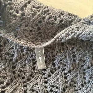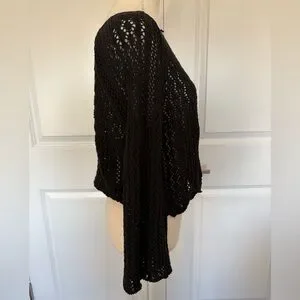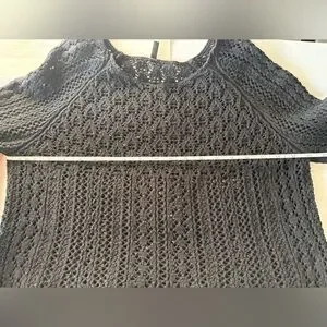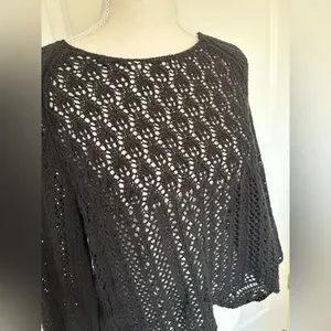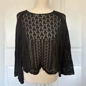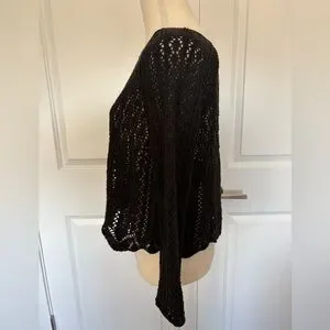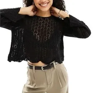 ONLY ASOS Black Crochet Cropped Sweater Small Scallop Hem Wide Sleeve