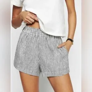 Reformation Light Gray & White Striped High Waist Women’s Shorts