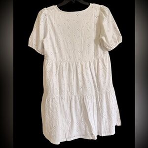LOFT White Eyelet Cotton Puff Sleeve Tiered Lined Swing Mini Dress Sz MP NWT