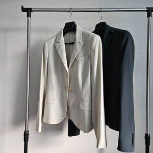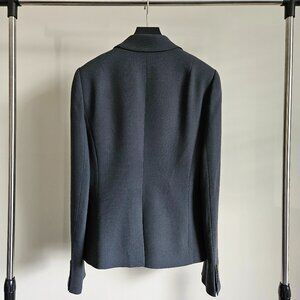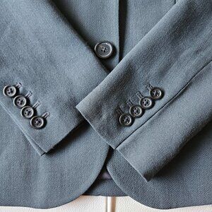 Classic J.Crew blazer in a timeless dark grey. Made from 100% wool with a structured, tailored look that works well for office or smart-casual outfits. Features a classic two-button front, functional pockets, and a single back vent.