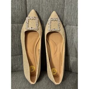 ANNE KLEIN NAMBI 7 GOLD METALLIC SPARKLE RHINESTONE Wedding Party NWOB PUMP SHOE