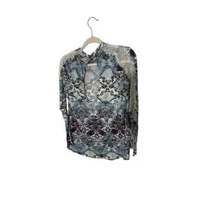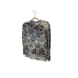 Free People Nouveau Printed Top Women's Casual Lace High Low Linen Western Boho
