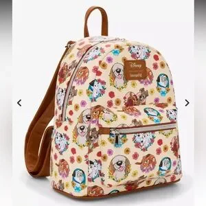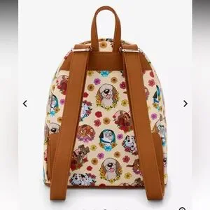 This mini backpack is decorated with flowers and all your favorite Disney canine characters, from films such as The Fox and The Hound, 101 Dalmatians, Lady and the Tramp, The Little Mermaid, Pocahontas, and more! Perfect for animal lovers, dog people, Disney trips, etc.
