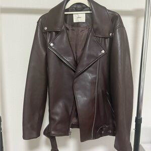 Wilfred Aritzia Freeform Vegan Leather Biker Jacket - Mocha Brown - M