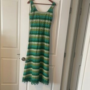 This maxi dress features a straight silhouette designed to fit slightly loosely, with a square neckline at the front and back. Adorned with delicate lace trim at the hem, it's crafted from intricately embroidered guipure fabric in a triangle pattern. Material: 100% Polyester.