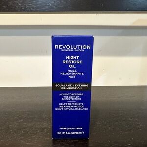 Revitalize your skin with Revolution's Night Restore Oil. Infused with squalane and evening primrose. Ideal for nighttime rejuvenation.