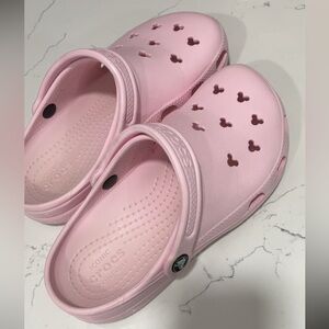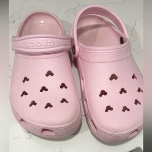 Charming light pink clogs by CROCS. Easy slip-on design. Ideal for playful adventures.