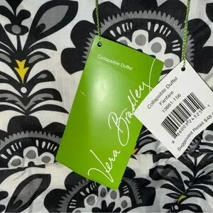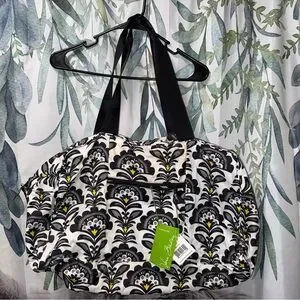 Vera Bradley Black & White Floral-Style Travel Bag with Yellow Accents