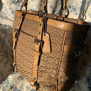 Coach tote brown tan leather trim