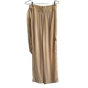 Effortlessly chic and endlessly versatile, the L’Academie “Mel” Belted Pants in Nude (Size Small) are the perfect blend of polished tailoring and casual ease. Designed with a flattering high waist, an attached self-tie belt, and elegant side slant pockets alongside utilitarian cargo pockets, these pants seamlessly transition from daytime errands to evening outings. Made from a soft, drapey fabric in a neutral nude tone, they pair beautifully with everything from crisp blouses to relaxed tees. Retailing at $238, this pair is a luxe, statement-making staple your wardrobe deserves.