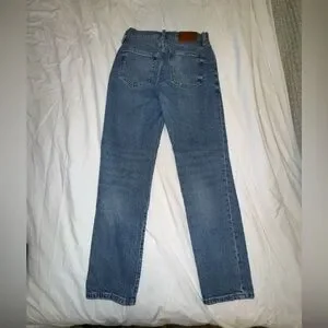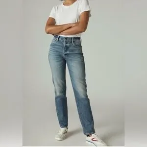 Stylish straight leg jeans by Lucky Brand. Style High Rise Drew Mom Jeans. Classic blue hue. Perfect for casual wear. Flattering and comfortable. Size 0 | 25 A. No flaws or signs of wear.