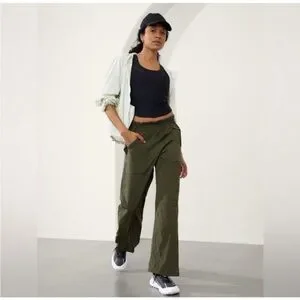 Athleta Trekkie Parachute Pant Dark Green Relaxed size 8 wide leg