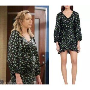 NWT Sandro Ruched Mini Novalee V Neck Floral Dress Size 34 XS Slim Fit MSRP $415