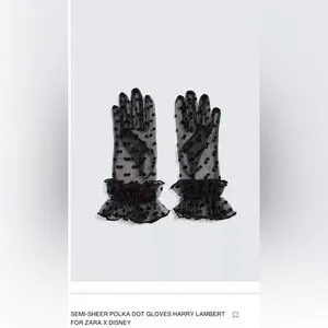 Elegant black sheer gloves with polka dot design. Collaboration between Zara and Disney. New never worn or tried on. Perfect for Prom! Sorry offers will not be entertained. Shipping on Sundays only.