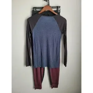 Tommy John Lounge Henley Medium Blue Black Maroon Thermal/cotton Jogger Set XS