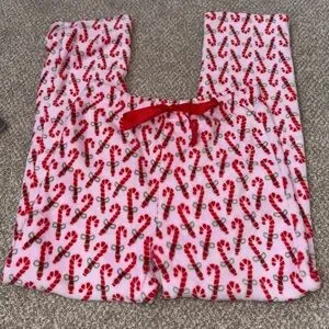 These cozy kids pajama pants feature a festive candy cane pattern, perfect for holiday lounging. The red and white design adds a cheerful touch to bedtime.