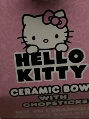 Hello Kitty bowl with signature character graphic. Pink background with white character and black lettering. Cute bow detail in pink. Ideal for display or casual use. NWT