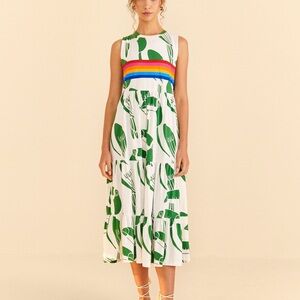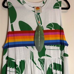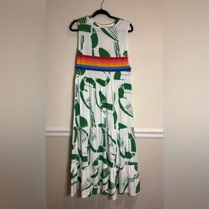 FARM RIO NWT Off-White Rainbow Toucans Organic Cotton Maxi Dress Size Large