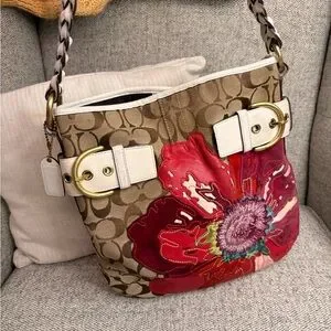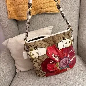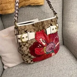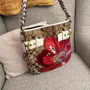 Coach Tan and Red Floral Shoulder Bag