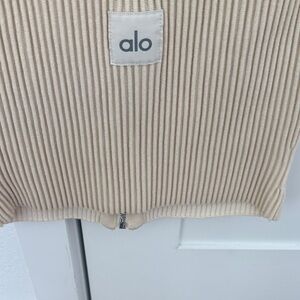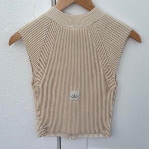 ALO Yoga Cream Ribbed Zip-Up Crop Top