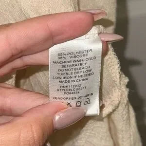 Cream Crochet-Trim Tunic Top with Fringe Accent and Open Back