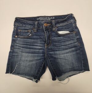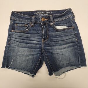 American Eagle denim cutoff shorts in dark blue wash. Stretchy and comfortable Size 6.
