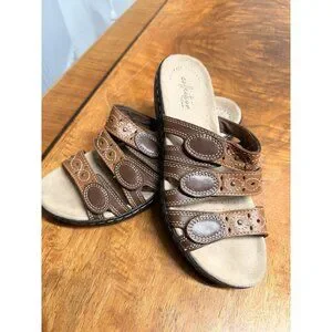 Clarks Leisa Cacti Q Sandal Slide Women's 6.5 Brown leather 2 Tone Adjustable Straps
