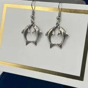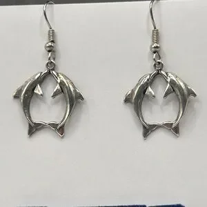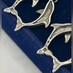 Vintage silver dolphin earrings perfect for any occasion. Stamped on back with flower makers mark and STER for sterling silver. Add a touch of 80’s coastal vibe charm to your outfit. Included will be a new silver polishing cloth to keep your earrings shiny.