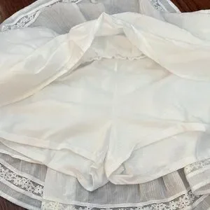 Chic white ruffled skirt with lace details. Perfect for a stylish look.