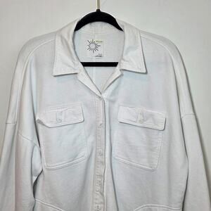 Aerie Oversized Button Shirt Womens Size M White Relaxed Heavyweight Shacket