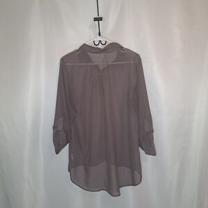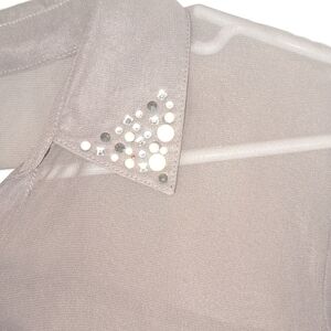Studio Y Sheer Button Down Shirt Embellished Collar Gray Lavendar Size L #72