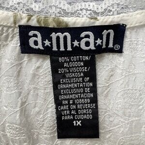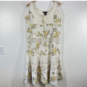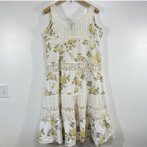 Vintage. Aman Boho Floral Lace Tiered Dress 1X Cotton Sleeveless Cottagecore