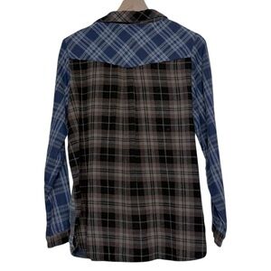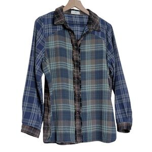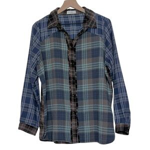 Natural Life Colorblock Plaid Flannel Button Up Fringed Shirt Medium Cozy Boho