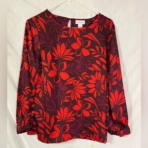🆕. Liz Claiborne Red and Burgundy Floral Blouse. S run larger