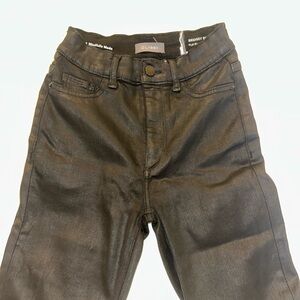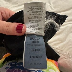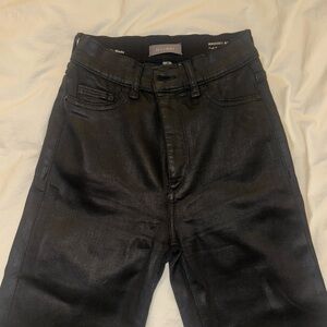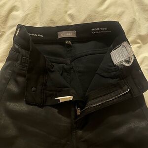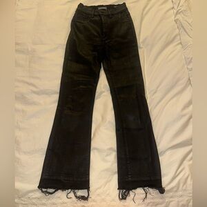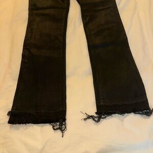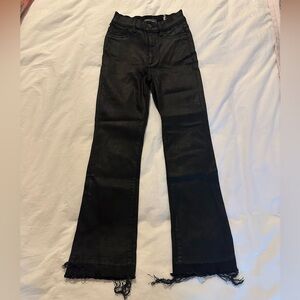 Stylish black jeans with a flared cut. Features a frayed hem for a trendy look. Perfect for casual wear.