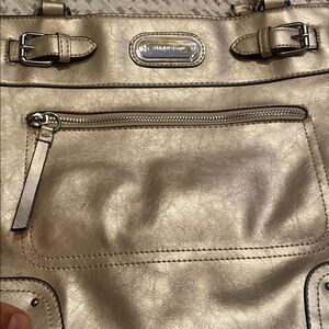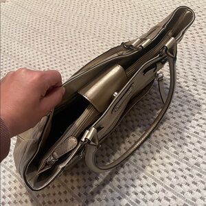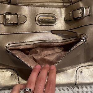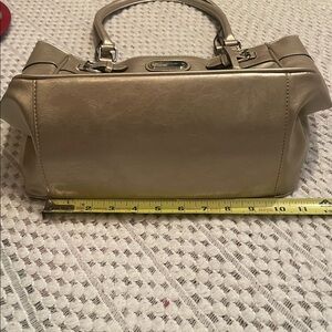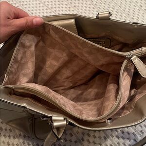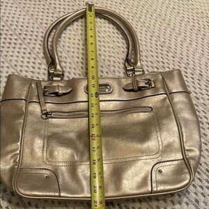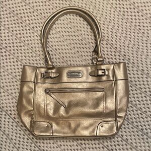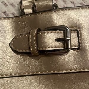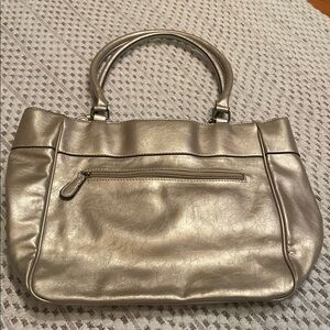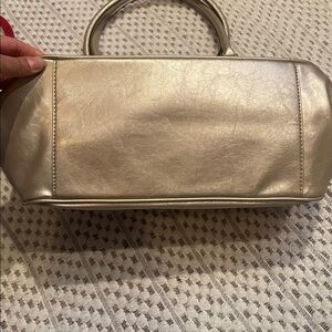 Elegant gold handbag perfect for any occasion. Features a sleek design with ample storage space both inside and outside.